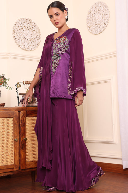 Purple Patchwork One Flap Jacket With Flair Pants