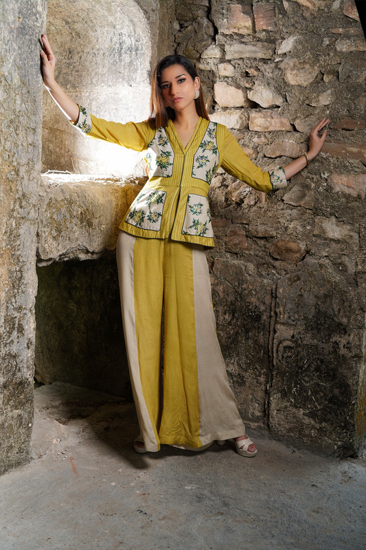 Beige Top & Lavender Pants Co-ord Set
