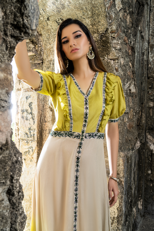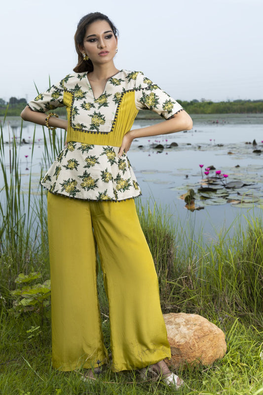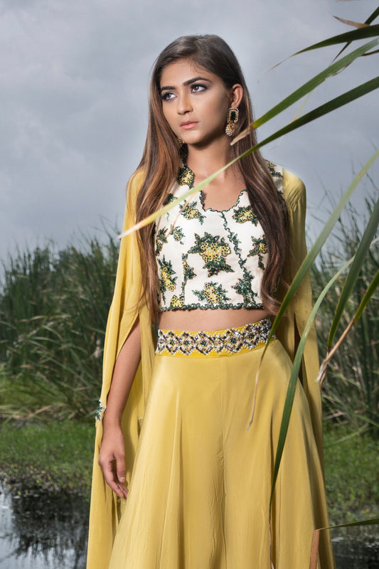 Blossom white & mustard crop top with skirt