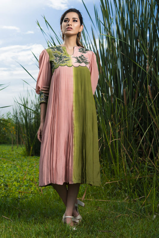 Rossa pink and green tunic dress