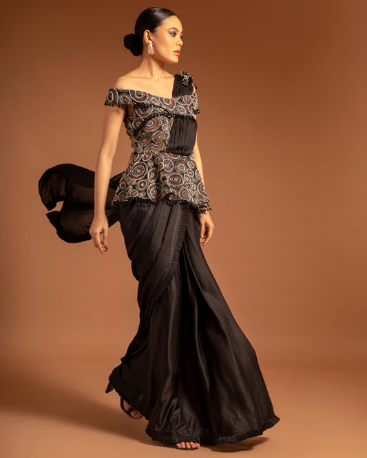 Black Ajrakh Gown Saree