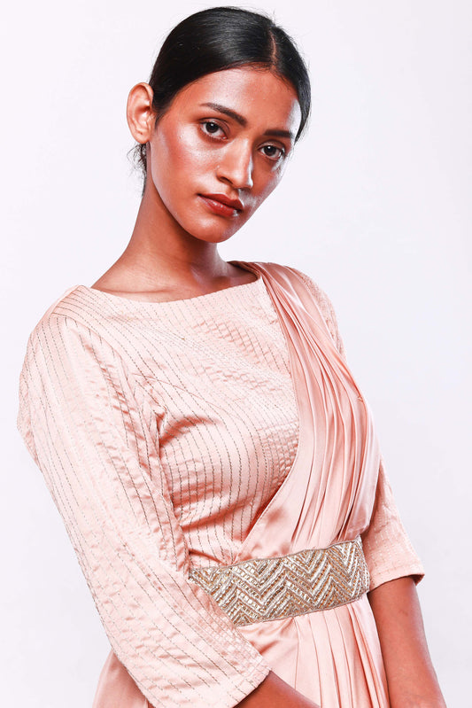 House of Misu in Rossa Pink Peplum top with cape and skirt