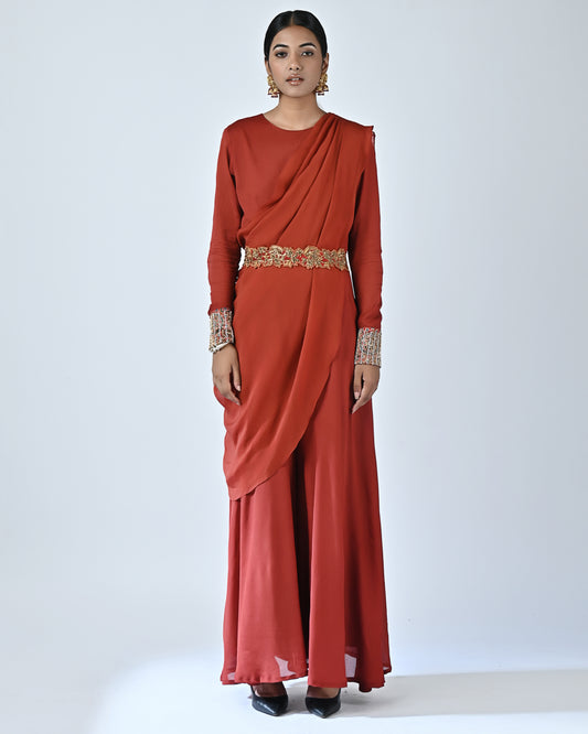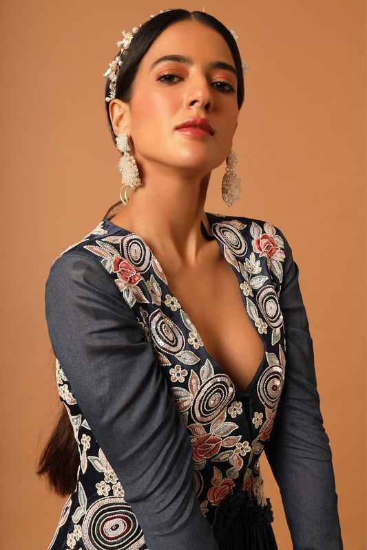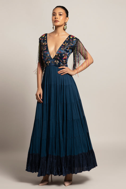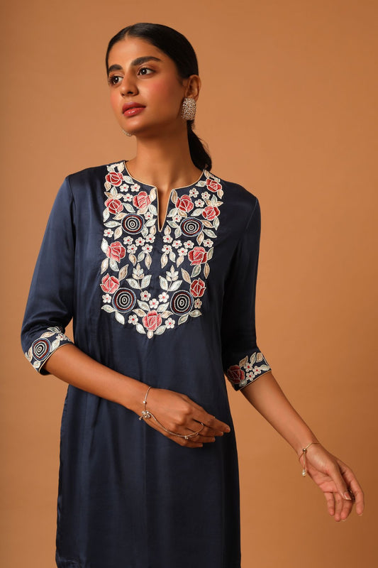 Cobalt blue embroidered Kurta with Asymmetrical pants.