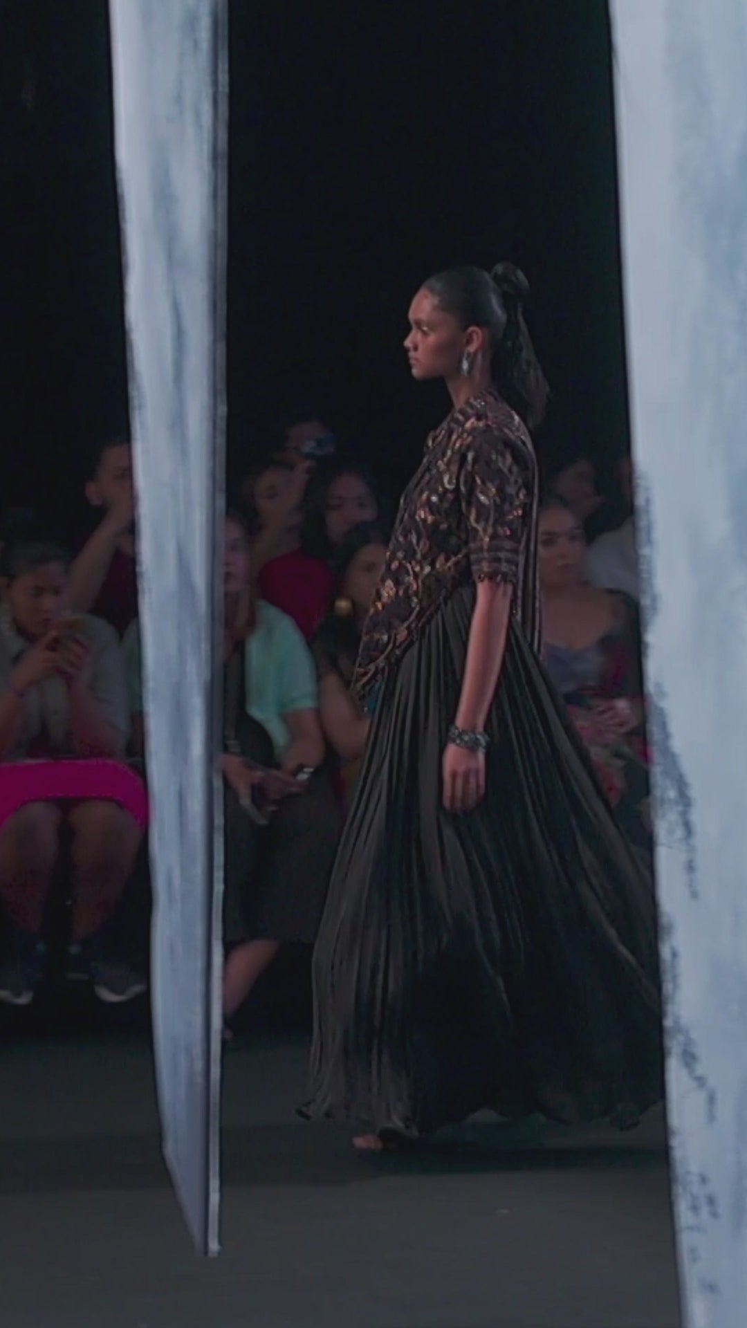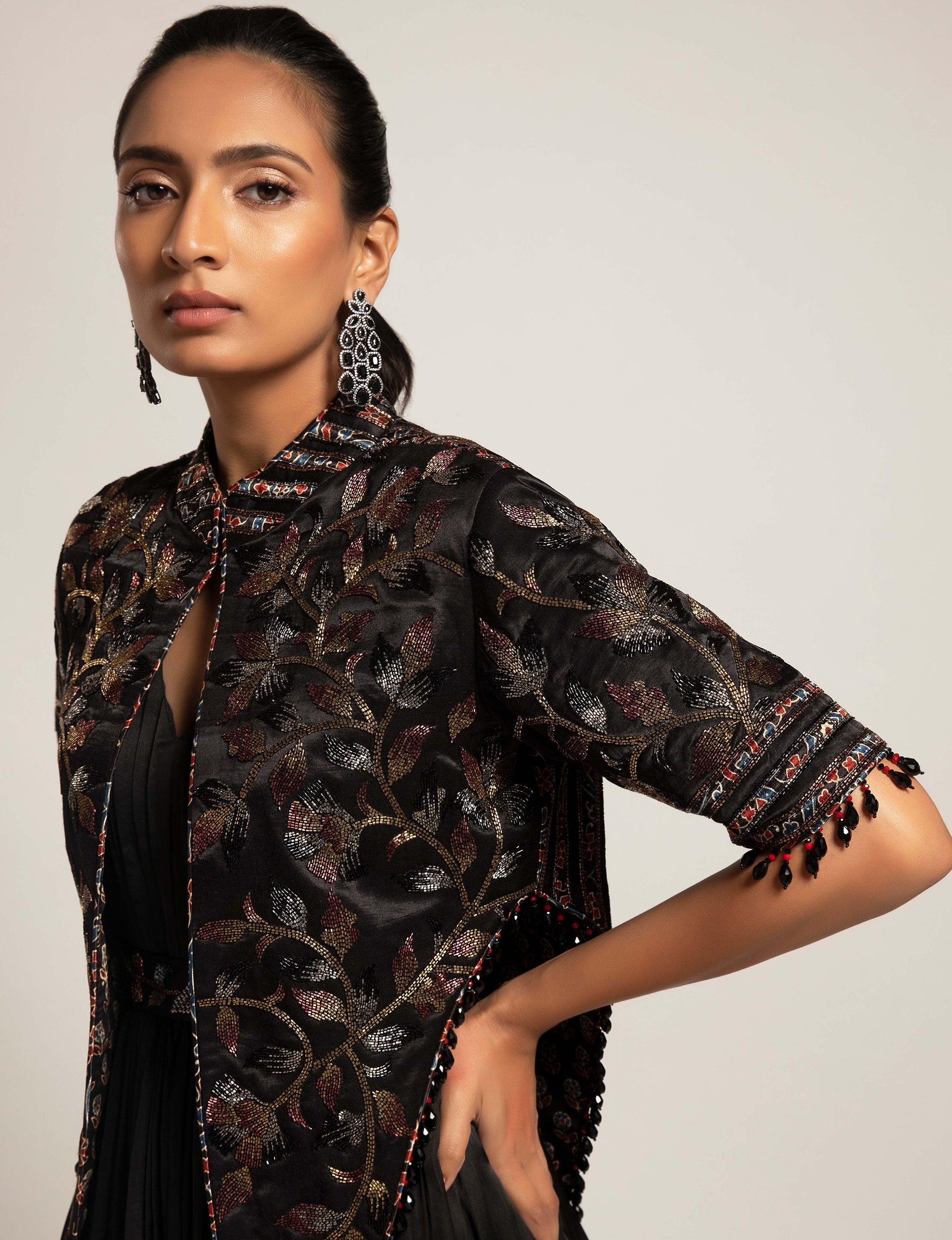 Black Gathered Gown with Embellished Jacket