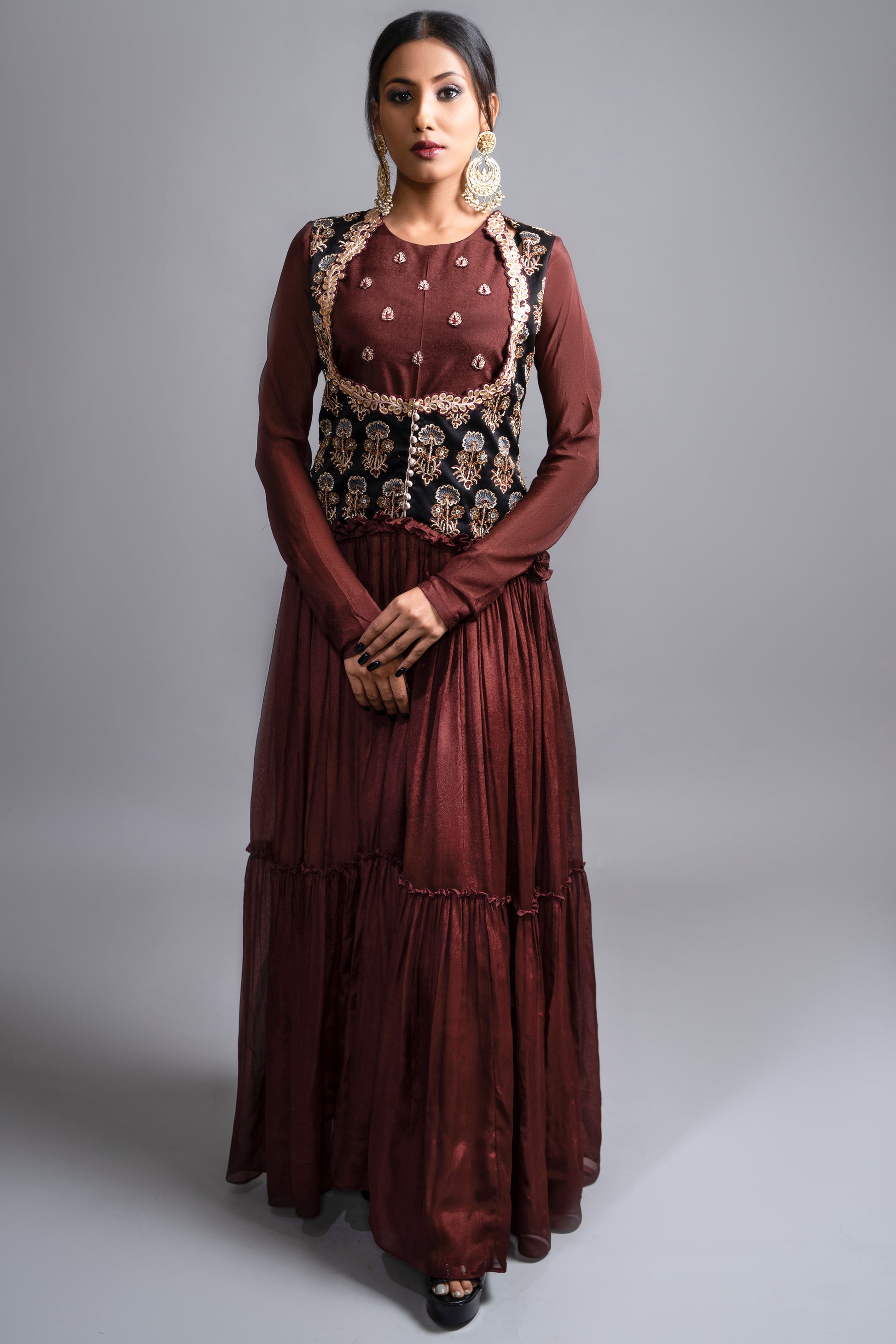 Print - Ajrakh and Embroidery - Zardosi and Nakshi work |