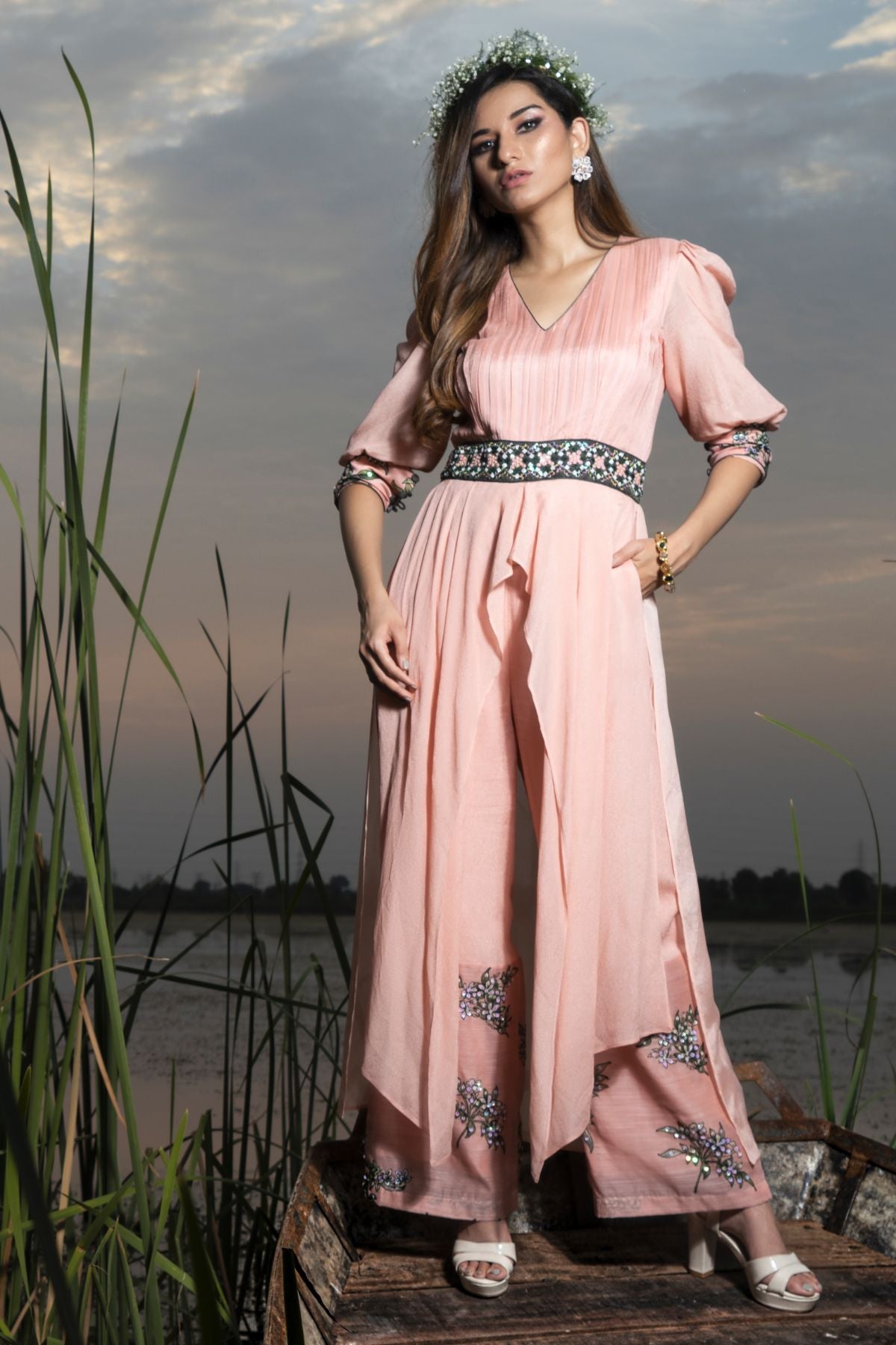 Print - Chanderi and Embroidery - French knot with Sequence and cut dana Embellishments |